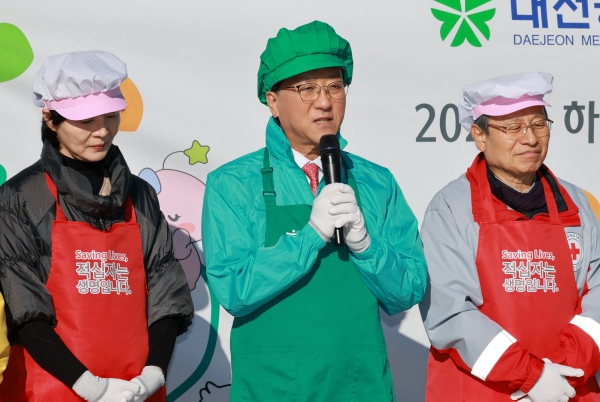 [충청뉴스큐] 대전시의회 조원휘 의장은 3일 시청 남문광장에서 열린 ‘온정으로 하나되는 사랑의 김장나눔’ 행사에 동참했다.