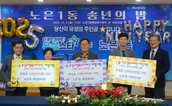 [충청뉴스큐] 대전 유성구 노은1동은 지난 2일 동 행정복지센터에서 주민자치회, 통장협의회, 새마을부녀회 등 3개 동 직능단체가 총 300만원의 성금을 유성구 행복누리재단에 기탁했다고 밝혔다.