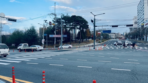 특히 성모병원사거리에는 교통섬을 설치하고 횡단보도를 신설해 보행자의 안전과 교통편의를 확보했다.