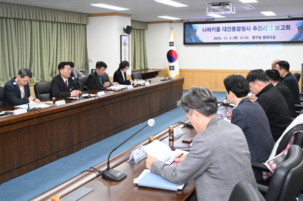 [충청뉴스큐] 대전 중구는 지난 5일 구청 중회의실에서 舊 충남경찰청 부지에 들어서게 될 '나라키움 대전통합청사' 건립에 대한 추진사항 보고회를 열었다고 밝혔다.