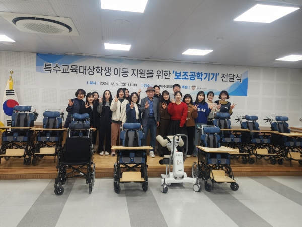 이번 전달식은 대전·세종·충남 주류기업 ㈜선양소주 조웅래 회장이 설립한 재단법인 조웅래나눔재단의 지역상생과 나눔경영을 실천하기 위한 행사로 특수교육대상학생의 이동 편의를 지원하기 위한 이동형 케어로봇 1대, 휠체어 9대 등 3천만원 상당의 보조공학기기를 기부했다.