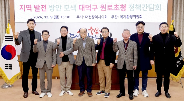 [충청뉴스큐] 대전시의회는 9일 오후 1시 30분에 시의회 소통실에서 ‘지역 발전 방안 모색을 위한 대덕구 원로초청 정책간담회’를 개최했다.