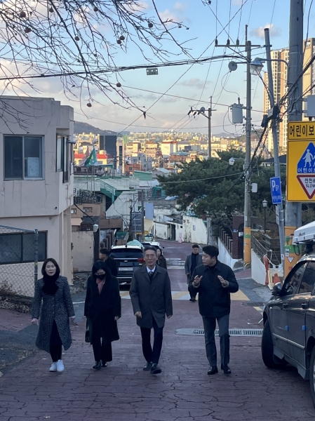 이날 김진오 의원은 관계 공무원들과 함께 도마동에서 대전복수초까지 학생들이 다니는 골목들을 함께 살피고 현장의 문제를 점검하며 아이들이 안전하게 학교를 다닐 수 있는 다양한 방안을 심도있게 논의했다.