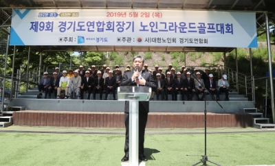 이날 오전 11시 수원 월드컵경기장 제1인조잔디구장에서 열린 이번 대회 개회식에는 ㈔대한노인회 경기도연합회 소속 44개 팀 선수 등 500여 명이 참석했다.