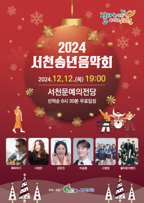 [충청뉴스큐] 서천군이 군민과 함께 희망찬 새해를 맞이하기 위해 오는 12일 오후 7시 문예의전당 대강당에서 ‘2024 서천송년음악회’를 개최한다.