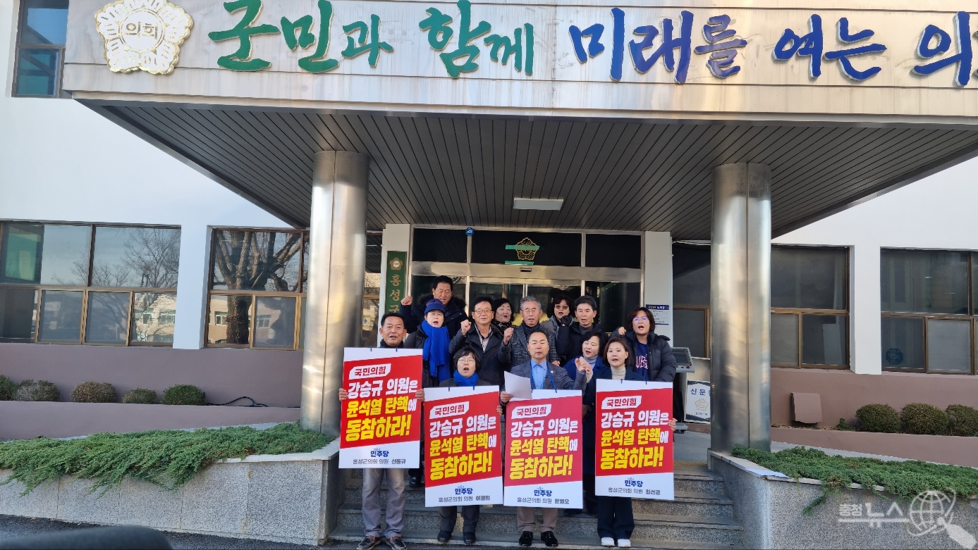 더불어민주당 소속 홍성군의원들이 윤석열 대통령 탄핵소추안 표결에 참여하지 않은 국민의힘 강승규 의원을 향해 홍성군민에게 사죄하고 탄핵에 동참할 것을 촉구했다.