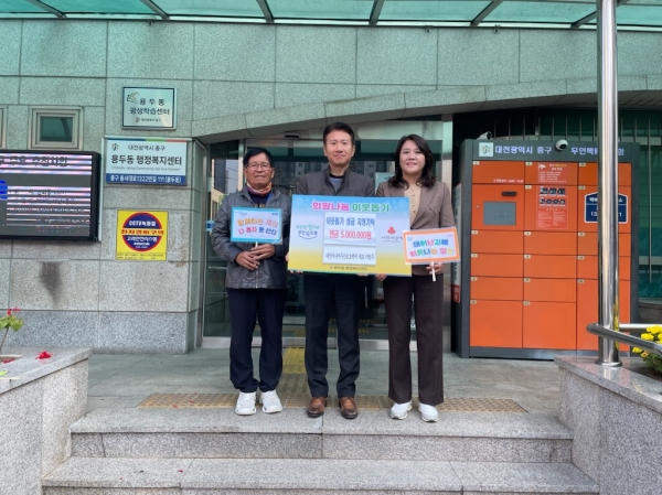 [충청뉴스큐] 대전 중구 용두동은 대전시니어주간보호센터에서 관내 어려운 어르신과 취약계층을 위해 성금 500만원을 기탁했다고 10일 밝혔다.