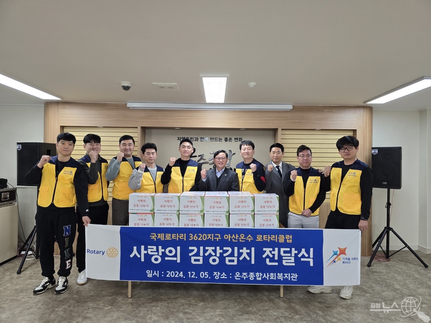 정화 정남수 회장은 "아산온수 로타리클럽은 지역사회의 어려운 이웃을 돕기 위해 항상 최선을 다하고 있다”며, "이번 김장김치 후원이 작은 도움이 되기를 바라며, 앞으로도 다양한 나눔 활동을 이어가겠다”고 전했다.