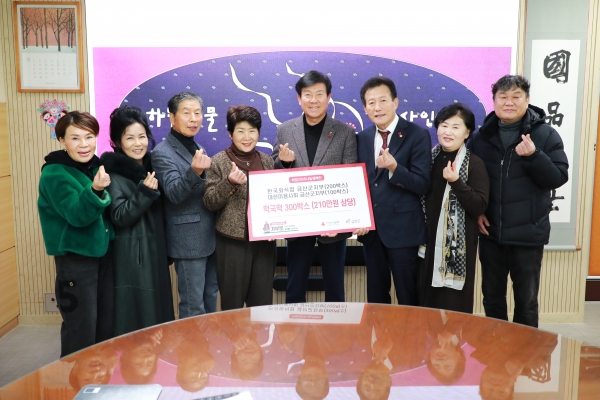 [충청뉴스큐] 한국외식업중앙회 금산군지부와 대한미용사회 금산군지부는 지난 10일 금산군청을 찾아 총 210만원 상당의 떡국떡 300박스를 기탁했다.