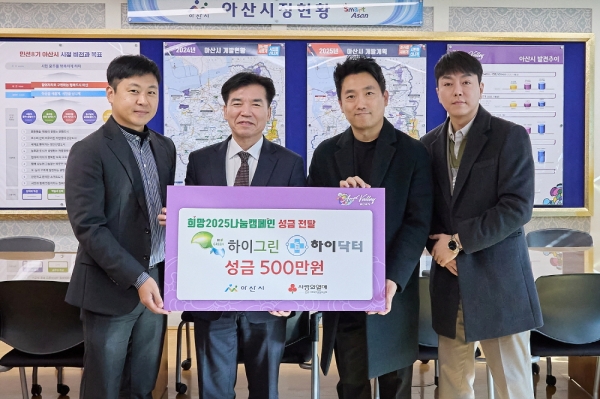 [충청뉴스큐] 지역사회 삶의 질 개선을 위한 사회공헌활동에 앞장서 온 ㈜하이그린&하이닥터가 11일 아산시청을 방문해 ‘희망2025나눔캠페인’ 성금 5백만원을 전달했다.