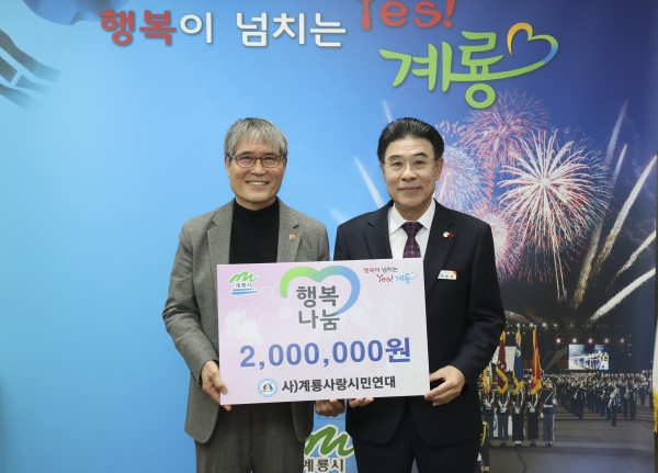 [충청뉴스큐] 계룡시는 지난 11일 사단법인 계룡사랑시민연대에서 관내 어려운 이웃을 위해 사용해 달라며 현금 200만원을 기탁했다고 밝혔다.