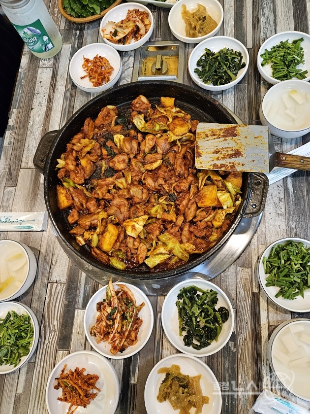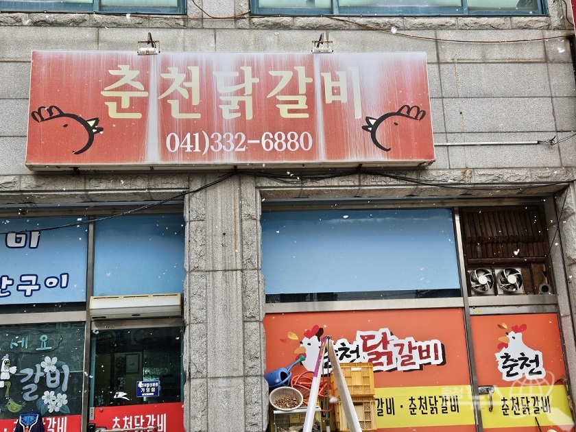 예산 먹자골목으로 유명한 예산읍 역전로에 자리한 춘천닭갈비집은 닭갈비와 함께 묵은지 통갈비를 선이고 있다.