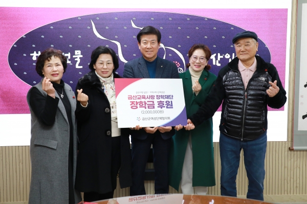 박범인 금산군수는 “금산군여성단체협의회의 나눔이 지역 인재들에게 큰 힘이 될 것”이라며 “장학금을 통해 지역의 학생들이 더 큰 꿈을 키워갈 수 있도록 최선을 다하겠다”고 말했다.