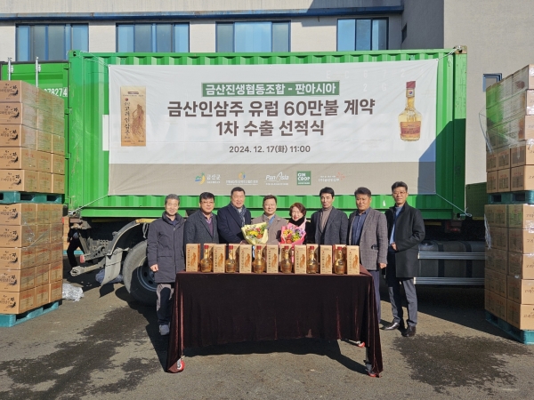 이날 선적식에는 심완보 금산부군수, 정옥균 금산군의회 부의장, 박지흥 금산인삼약초산업진흥원장, 정원식 금산진생협동조합 이사 등이 함께 했다.