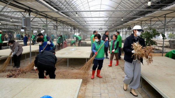 군은 지난 1일부터 13일까지 공무원, 자원봉사자, 도시농부, 군인 등 1200여명의 지원단을 꾸려 피해 농가를 찾아 무너진 시설하우스 정리와 축사 철거 작업 등을 지원했다.