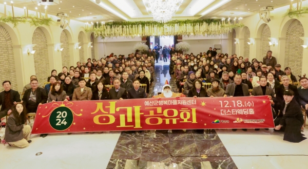 [충청뉴스큐] 예산군은 지난 18일 더스타웨딩홀에서 마을만들기 및 지역공동체 사업을 함께 공유하는 “2024년 예산군행복마을지원센터 성과공유회”를 성황리에 개최했다고 밝혔다.