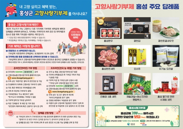 유희전 행정지원과장은 “고향사랑기부제 시행 2년 만에 주목받는 지자체로 성장할 수 있었던 것은 전적으로 홍성을 선택해 주신 기부자분들 덕분”이라며 깊은 감사를 표했다.