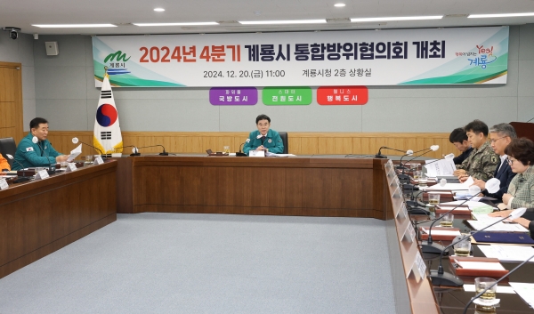 [충청뉴스큐] 계룡시는 지난 20일 시청 상황실에서 민·관·군·경 등 통합방위 관련 주요 기관·단체장이 참석한 가운데 ‘2024년 4분기 통합방위협의회’를 개최했다.