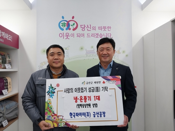 같은 날 한국타이어앤테크놀로지 금산공장은 지역 사회와의 상생을 위해 제원면에 500만원의 기부금을 전달했다.
