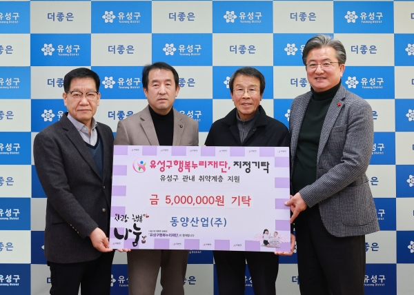 [충청뉴스큐] 대전 유성구는 26일 동양산업㈜이 저소득층 지원을 위해 후원금 500만원을 기탁했다고 밝혔다.