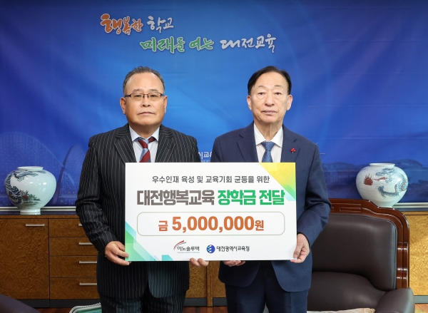 설동호 대전시교육감은 “지난해에 이어 올해도 꾸준한 후원의 손길을 보내주시는 ㈜이노솔루텍 김영일 대표이사님과 임직원 여러분께 감사드린다”며 “지역 각계에서 보내주시는 따뜻한 마음이 우리 학생들에게 잘 전해지도록 장학사업을 더욱 활성화하겠다”고 감사 인사를 전했다.