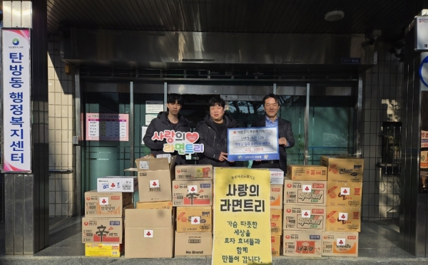 [충청뉴스큐] 대전 서구 탄방동 행정복지센터는 충효태권도합기도장으로부터 라면 1,000개를 기탁받았다고 27일 밝혔다.