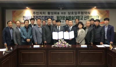 [충청뉴스큐] 안성시 주민자치협의회는 지난달 25일 시청 2층 상황실에서 동아방송예술대학교 산학협력단과 상호 업무협력을 위한 협약을 체결했다.