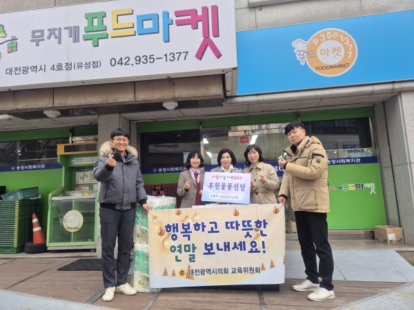 [충청뉴스큐] 대전광역시의회 이금선 교육위원장은 연말연시를 맞아 30일 송강동에 소재한 송강사회복지관 및 무지개푸드마켓을 방문해 시설에 필요한 물품을 전달하며 이웃사랑을 실천했다.