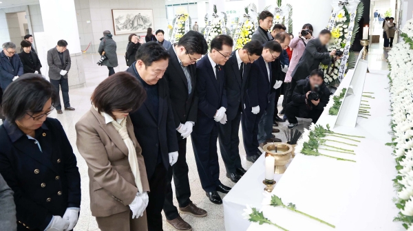 [충청뉴스큐] 대전시의회 조원휘 의장은 30일 오후 대전시청 1층에 마련된 제주항공 여객기 사고 희생자 합동분향소를 찾아 희생자들의 명복을 빌며 깊은 애도의 마음을 표했다.