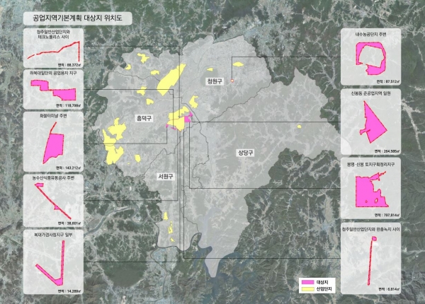 대상지역은 산업단지 등을 제외한 순수 용도지역상 공업지역이며 청주시 전체 공업지역 21.30㎢ 중 산업단지 면적 19.74㎢를 제외한 1.56㎢다.