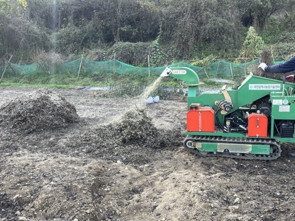 영농부산물 파쇄 지원 사업은 농작물 수확 후 발생하는 고춧대, 깻대, 과수 잔가지 등의 영농부산물을 파쇄해 산불 예방과 미세먼지 저감에 기여하고 농업인들의 일손을 덜어주기 위해 추진된다.