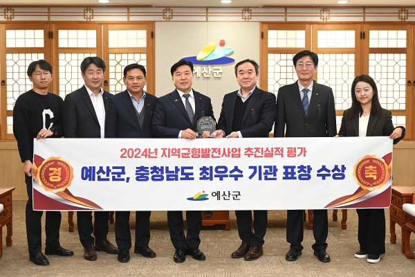 [충청뉴스큐] 예산군은 2024년 지역균형발전사업 추진실적 평가 ‘충청남도 최우수 기관 표창 수상’과 함께 제2단계 제2기 균형발전사업 시군자율사업 공모에 총 2건이 선정돼 사업비 141억원을 추가 확보했다고 밝혔다.