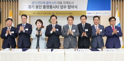 이재명 경기도지사와 백군기 용인시장, 이헌욱 경기도시공사 사장, 김한섭 용인도시공사 사장은 7일 경기도청에서 이런 내용을 담은 ‘경기용인플랫폼시티 조성 양해각서’를 체결하고 사업 성공을 위해 협력하기로 했다. 이날 협약식에는 정춘숙 국회의원, 경기도의회 남종섭, 김중식 도의원 등 약 20여명이 함께했다.