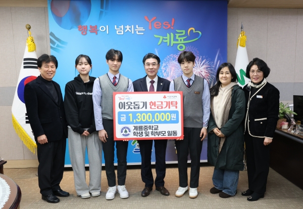 이응우 시장은 “계룡중학교 학생과 학부모의 따뜻한 마음에 깊이 감사드린다”며 “시에서도 취약계층을 두텁게 보호하고 복지사각지대를 해소할 수 있도록 보다 많은 노력을 기울이겠다”고 말했다.