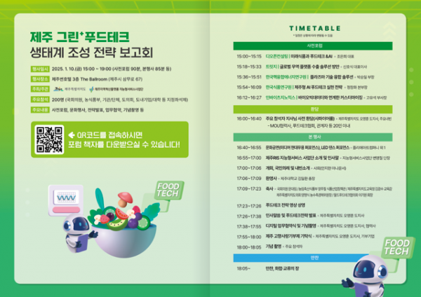 제주도는 10일 오후 3시 제주썬호텔에서 사전포럼을 시작으로 ‘제주 그린+푸드테크 생태계 조성 전략’을 발표하고 2035년까지의 종합발전계획을 제시한다 이번 전략은 기후변화와 식량 위기에 선제적으로 대응하면서 지속 가능한 성장 기반을 마련하기 위한 것이다.