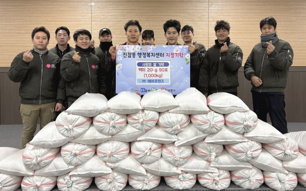[충청뉴스큐] 대전 유성구 진잠동은 14일 ㈜에어프렌즈에서 20kg 백미 50포를 기탁했다고 밝혔다.