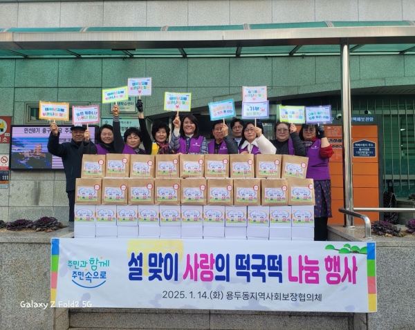 [충청뉴스큐] 대전 중구 용두동은 14일 설 명절을 맞아 지역사회보장협의체에서 ‘사랑의 떡국떡 나눔’행사를 개최하고 떡국떡 및 사골곰탕을 관내 홀몸 어르신 및 취약계층 200세대에 전달했다고 밝혔다.