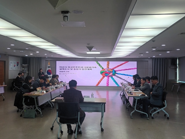 [충청뉴스큐] 아산시는 지난 13일 시청 상황실에서 ‘외국인주민과 다문화가족의 실태조사 및 중장기 발전계획 수립을 위한 연구용역’ 최종보고회를 개최했다.