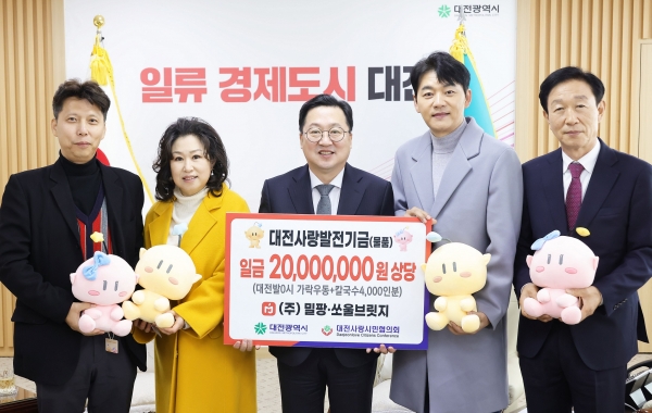 대전시청 응접실에서 진행된 기탁식에는 이장우 대전시장, 박경수 대전사랑시민협의회장, 나득균 대표, 김승수 부대표가 함께했다.