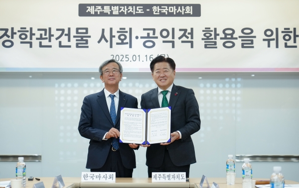 [충청뉴스큐] 제주특별자치도가 한국마사회와 서울 용산구 소재 마사회 장학관 건물의 공익적 활용을 위한 업무협약을 맺었다.