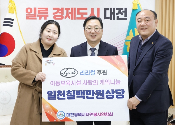기탁식에는 이장우 대전시장, 박서정 리리컬 대표, 이기훈 스토리온 대표, 박광수 대전광역시자원봉사연합회 수석부회장 등이 참석했다.