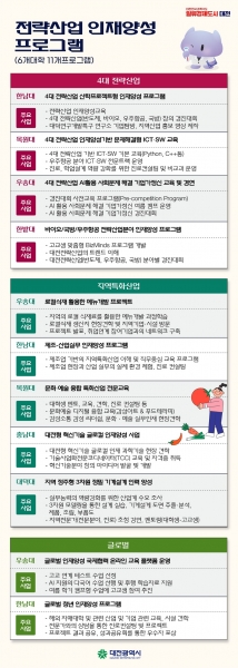 시는 선정된 프로그램의 성공적 추진을 위해 2월에 대전시-교육청-대학-일자리경제진흥원-기업 등이 함께하는 유관기관 협의회를 구성해 사업 수행 상황 점검 및 성과 모니터링도 시행할 계획이다.