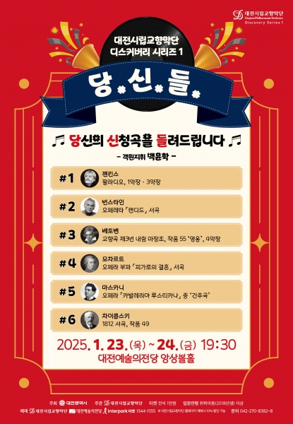 [충청뉴스큐] 대전시립교향악단이 디스커버리 시리즈 1‘당.신.들.’을 23일 24 저녁 7시 30분 대전예술의전당 앙상블홀에서 선보인다.