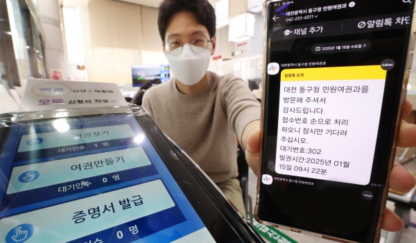 이에 따라, 여권 및 제증명 발급 등 민원 업무 처리를 위해 민원실을 방문한 민원인은 순번 발권기에 휴대전화 번호를 입력하면, △대기 번호 △대기 임박 △순번 도래 안내를 카카오 알림톡으로 받아볼 수 있다.
