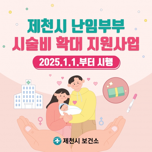 [충청뉴스큐] 제천시 보건소는 저출산 문제 극복을 위해 임신을 원하는 난임 부부에게 경제적 부담 완화 지원책으로 올 1월부터 ‘제천시 난임부부 시술비 확대 지원사업’을 추진 중에 있다.