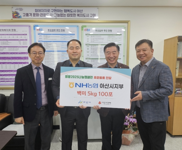 김만섭 문화복지국장은 “매년 관내 취약계층을 위해 소중한 나눔을 실천해주시는 NH농협은행 아산시지부에 감사드린다”며 “앞으로 아산시도 복지사각지대 해소를 위해 적극적으로 노력하겠다”고 말했다.
