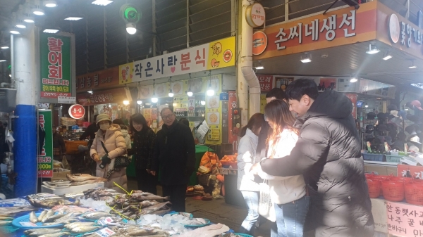[충청뉴스큐] 아산시 외암민속마을보존회와 문화유산과는 23일 온양온천시장에서 열린 ‘설맞이 전통시장 장보기 행사’에 동참했다.
