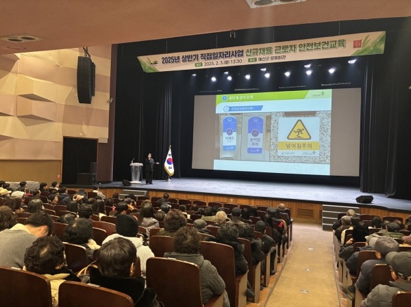 [충청뉴스큐] 예산군은 지난 3일 예산군 문예회관에서 직접일자리사업 참여근로자와 담당자 250여명을 대상으로 산업안전 및 중대재해 예방에 대한 안전의식을 고취하기 위한 ‘2025년 상반기 직접일자리사업 안전보건 교육’을 실시했다.
