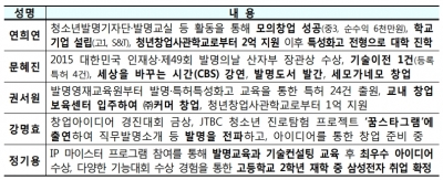 일례로 , ‘발명·특허 특성화고등학교’에 진학해 체계적인 발명교육을 받은 연희연 학생은 직접 개발한 발명교구의 특허등록을 통해 본격 창업을 시작했고, 이후 특기자 전형으로 서강대학교에 진학했다.