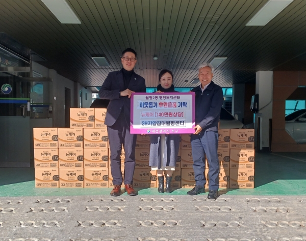 [충청뉴스큐] 대전 서구 월평2동 행정복지센터는 3H지압침대 월평센터로부터 환자용 식음료 ‘뉴케어’를 전달받았다고 4일 밝혔다.